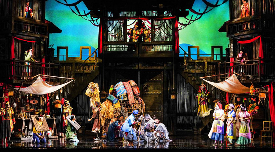 为了让丝路故事能被全球观众理解,剧目采用了中国内核加国际班底的模式,由曾联合制作《美女与野兽》《狮子王》的董方思担纲制作,并由屡获大奖的歌博瑞执导,中西融合的16首金曲由金培达和梁芒联手创作。